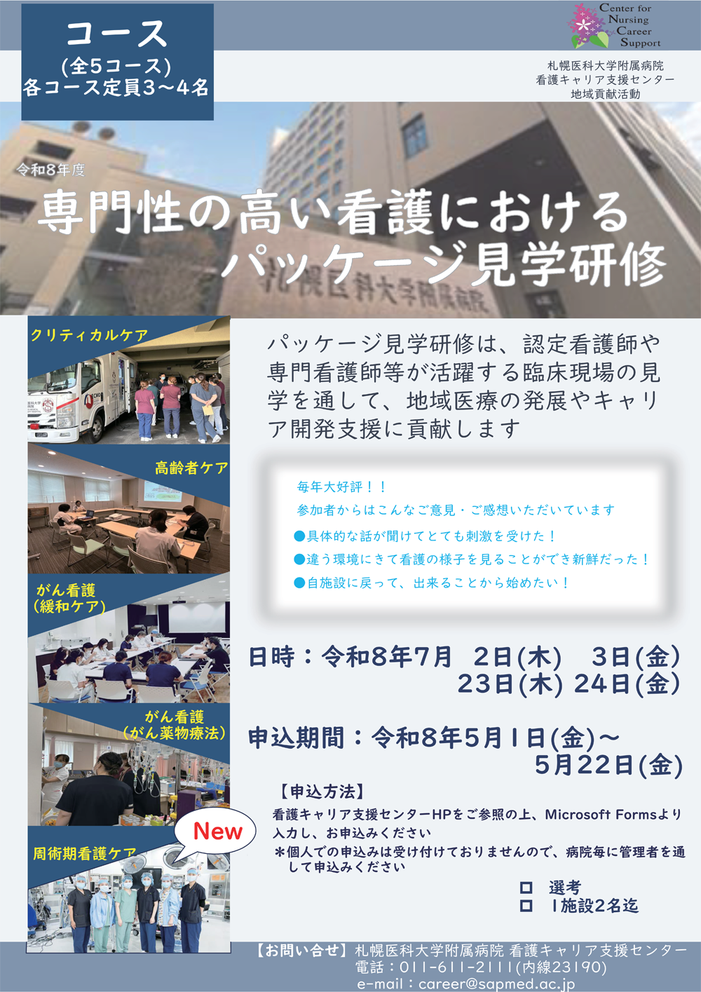 新企画! 「専門性の高い看護におけるパッケージ見学研修」
