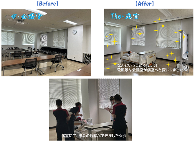 10月の研修では、「会議室」を「病室」へと変身させました