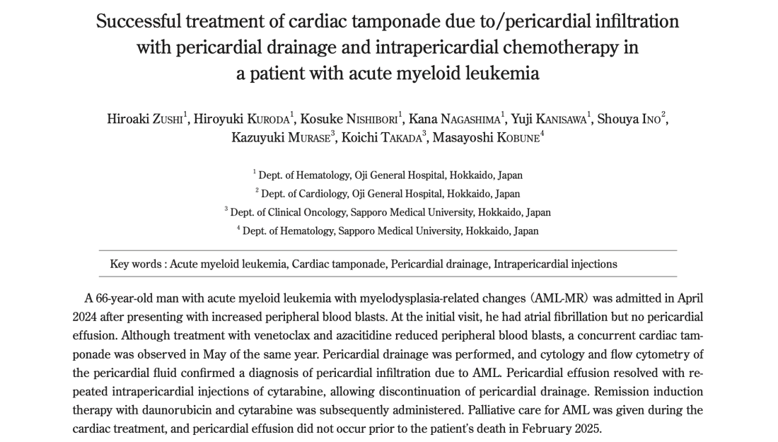 2026年3月13日 王子総合病院 厨子弘章先生 黒田裕行先生の症例報告が臨床血液に掲載されました