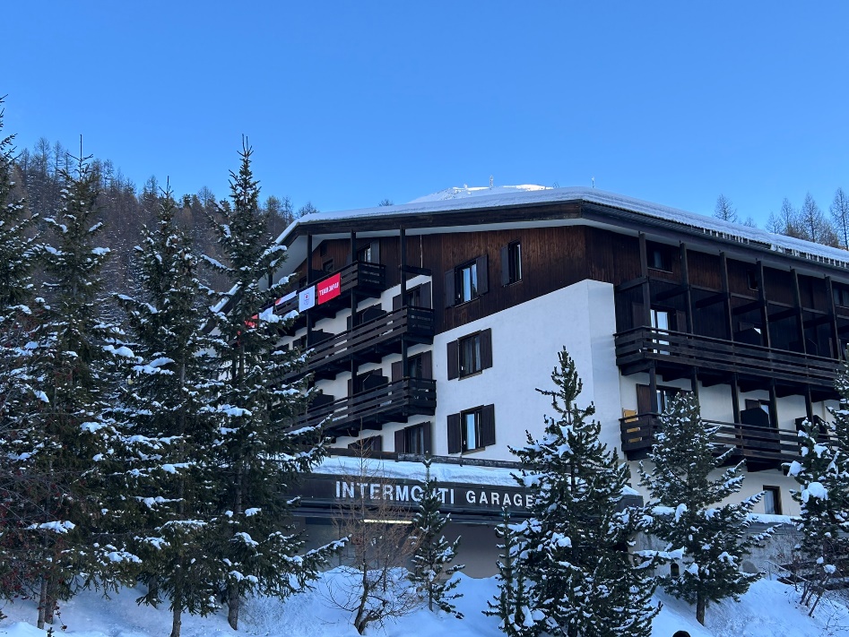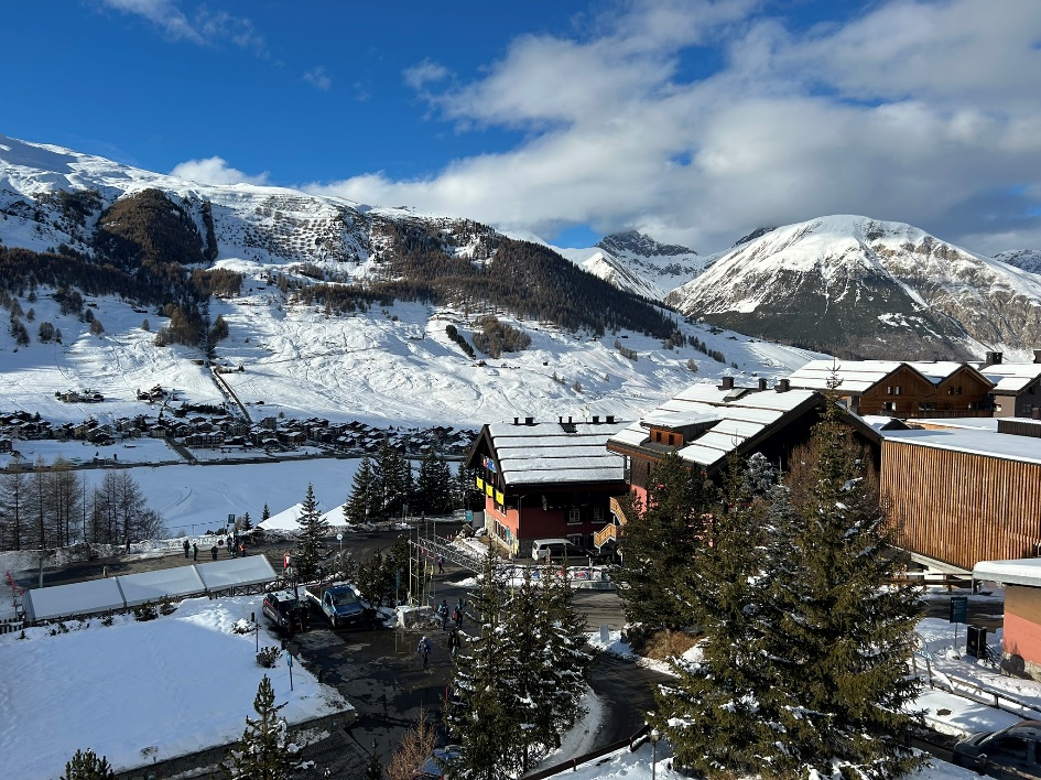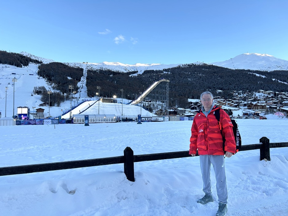 「私が担当する選手村のあるリヴィーニョは、スノーボードとスキーフリースタイル(モーグルなど)の競技会場があります(写真1,2)。人口約6,800人で、スイスとの国境に位置するアルプス山中の町です。ミラノから北東約140kmに位置し、海抜1800mくらいです。四方を山に囲まれ、その山肌にスキー場があるので、スキー場に囲まれているような町です。