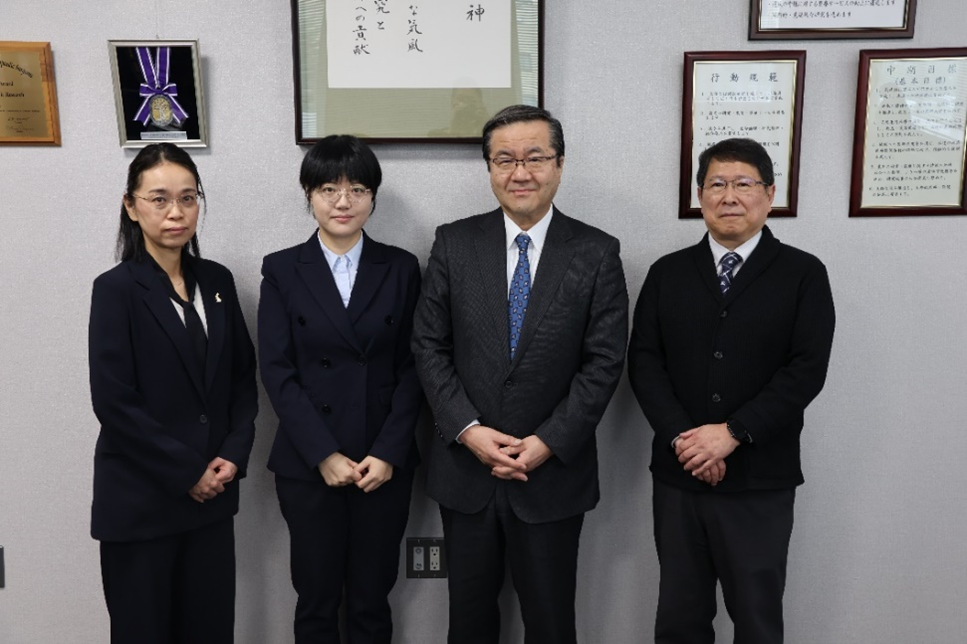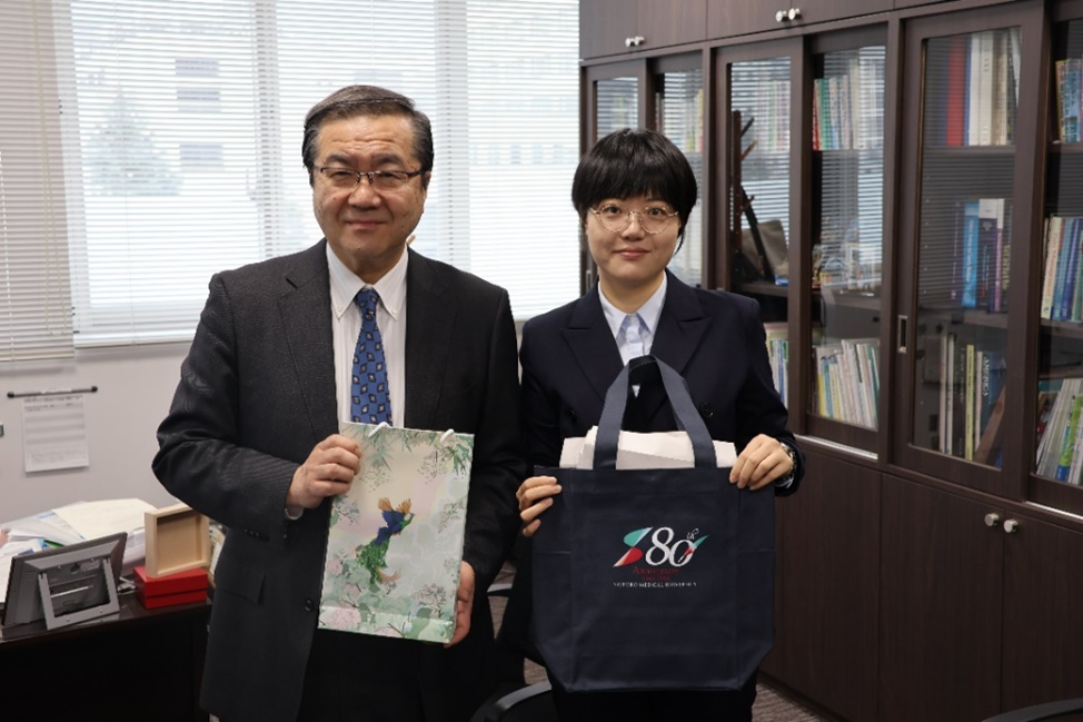 11月12日~27日の期間で、中国佳木斯(ジャムス)大学教員の姜 雨微(ジャン ユウェイ)先生が来学されました。姜先生は看護師で、脳性麻痺児のリハビリテーション・教育などを研究テーマにされています。今回、保健医療学部看護学科の今野学科長が受け入れ責任者となり、地域看護に関しては平野教授、精神看護に関しては澤田教授に研修を担当していただきました。11月13日には学長室に表敬訪問に来られました(写真11-13)。
