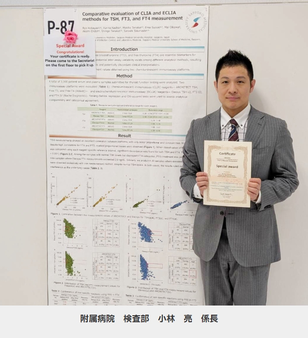 検査部の村井良精係長が令和5年度北海道公立大学法人札幌医科大学職員表彰(成績顕著)を受けました。