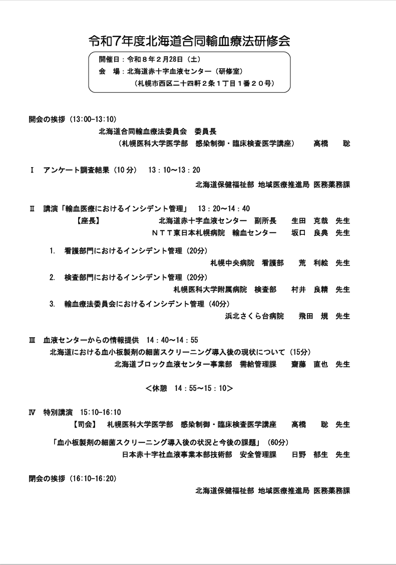 令和7年度北海道合同輸血療法研修会