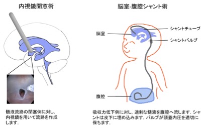 頭の中で髄液が過剰になったり、血液が溜まる病気です。頭が大きい、おでこが出ている、発達が進まないなどの症状ではじまります。早期発見し、発達障害を回避することが重要です。治療法は水頭症の種類によって決まり、内視鏡開窓術またはシャント術を行います。